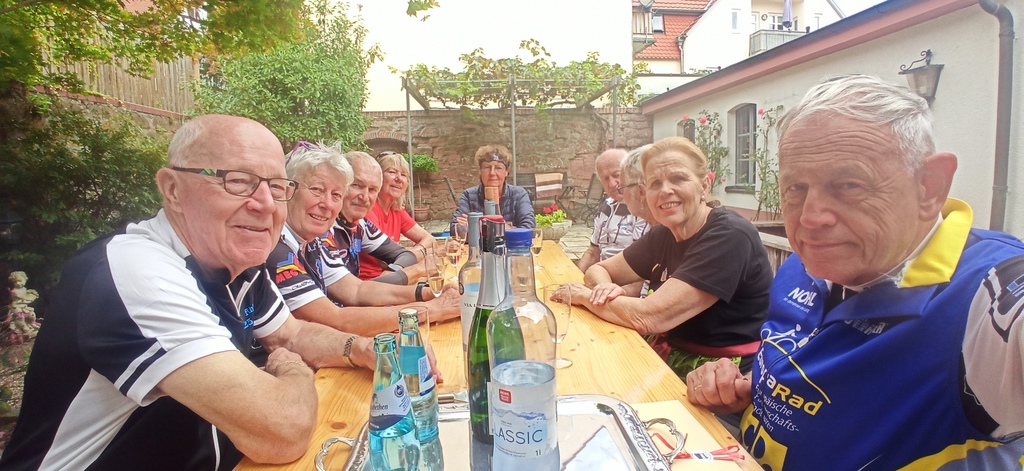 von dort rechts runter nach Bensheim, eine Abfahrt von fast 11 km. Dort ging es dann hinauf nach Zell mit dem Ziel Götzinger, wo wir für die Anstrengungen der Hinfahrt kulinarisch reichlich belohnt